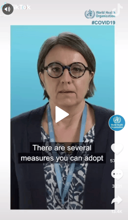 I syfte att snabbt och enkelt nå ut med validerad och pålitlig information till yngre målgrupper skaffade WHO ett TikTok-konto i slutet på februari. Där användarna finns, engagerar och spenderar tid behöver WHO vara (Business Insider, 1 mars)